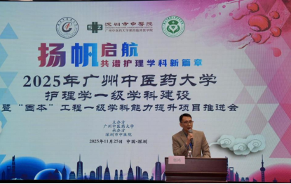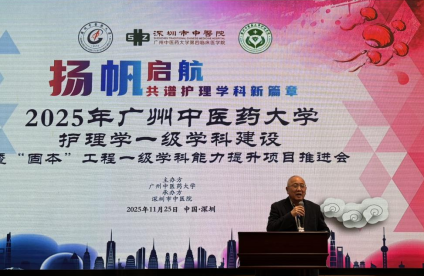2025年11月25日,广州中医药大学护理学一级学科建设暨“固本”工程一级学科能力提升项目推进会在深圳市中医院(光明院区)隆重召开。本次大会以“扬帆·启航:共谱护理学科新篇章”为主题,汇聚来自国内多所知名高校和医疗机构的专家学者,回顾“固本”工程项目阶段性成果,围绕护理学科发展、多学科交叉融合,共同探讨护理学一级学科高质量发展路径。