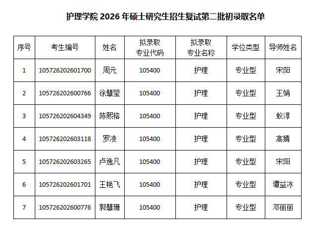 ,公布第二批初录取名单如下,最终录取结果以大学研招办公布为准。
